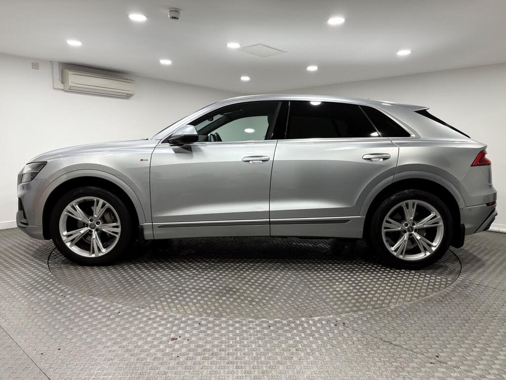 With a low mileage of just 27,628 miles for its age, this audi q8 presents a remarkable find, already serviced 3 times and is supplied with 2 keys. finished in metallic floret silver with black part leather interior. the s line trim enhances its already sophisticated appeal, fitted with an upgraded bang & olufsen soundsystem while practical features like the audi smartphone interface, including android auto and apple carplay, keep you connected. navigating tight spots is made effortless with the parking system plus, featuring front and rear sensors, 360 degree cameras, and parking assistance. furthermore, the audi phone box with wireless charging and the light and rain sensor with automatic headlights add to the convenience.this audi q8 is designed for those who appreciate both performance and practicality. its impressive acceleration, reaching 0-62mph in just 6.3 seconds, highlights its dynamic capabilities, setting it apart from many other vehicles in its class. the generous boot space ensures you have ample room for luggage, shopping, or equipment, making it a versatile choice for families and adventurers alike. with a substantial towing weight of 2800 kg, this q8 is also well equipped for towing caravans or trailers.specificationsthe data displayed above details the usual specification of the most recent model of this vehicle. it is not the exact data for the actual vehicle being offered for sale and data for older models may vary slightly. we recommend you check the vehicle details with your sales advisor before you buy.-120+ cars www.justaudivw.co.uk-open 7 days a week 01522 246777[!@@additional info@@!]21in alloy wheels - 5-segment-spoke design, 48 volt mild hybrid technology, ami - audi music interface, adaptive air sport suspension, airbags - driver, airbags - front curtain, airbags - front passenger, aluminium window trims, anti theft locking wheel bolts and wheel loosening detection, anti-theft alarm with tow-away protection, audi connect, audi connect safety and service, audi drive select, audi hd matrix led headlights, audi phone box with wireless charging, audi pre-sense front, audi smartphone interface, audi sound system, audi virtual cockpit, auto dimming and frameless rear view mirror, cloth headlining in black, comfort front centre armrest, coming-leaving home animations in front and rear, cruise control with speed limiter, dab digital radio, deluxe 2-zone electronic climate control, door mirrors - heated-electrically adjustable-folding and auto dimming with memory function, esc - electronic stabilisation control inc abs - asr and edl, electric windows - front and rear, electrically adjustable front seats with memory function for drivers side, electromechanical parking brake, electromechanical power steering - speed-sensitive provides a precise steering feel at high speeds and excellent assistance when parking., extended pedestrian protection, exterior mirror housings in body colour, first aid kit and warning triangle, front and rear floor mats, front and rear side airbags with head airbag system, headlight washers, heat insulating glass - windscreen, heated front seats, hill descent control, hill hold assist, isofix child seat mounting for the front passenger seat with front passenger airbag deactivation and isofix child seat mounting and top tether for the outer rear seats, illuminated door sill trims with s logo, illuminated sun visors with vanity mirrors, inlays - darkened matt brushed aluminium, keyless go with remote central locking, led interior ambient lighting pack, lane departure warning, leather gear lever, light and rain sensor, luggage compartment sill protection in stainless steel, mmi navigation plus with mmi touch, natural voice recognition, operating buttons in black - glass look with haptic feedback, parking system plus - front and rear sensors, pedals in stainless steel, power operated tailgate, privacy glass, rear-view camera, s line badges on the front wings, s line body styling, s line styling, s line front and rear bumpers - air inlets - door trim strips, seat belt monitoring, seats - split folding rear - 40-20-40, signature led daytime-running lights, steering wheel - 3-spoke leather multi-function with shift paddles, tool kit, tyre pressure loss indicator, tyre repair kit, quattro all-wheel drive, bang and olufsen premium sound system