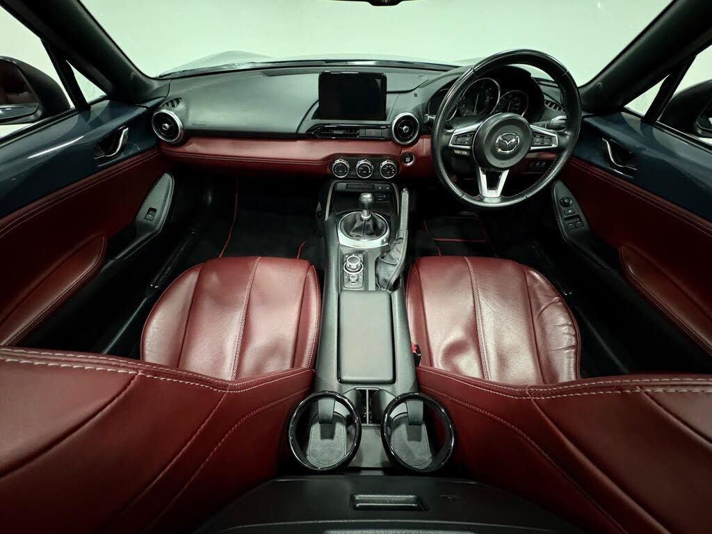 This 2021 mazda mx-5 skyactiv-g r-sport is a superb example of this iconic roadster, offering an engaging driving experience. last serviced by mazda in may 2025 at 26124 miles, polymetal grey exterior with heated dark red leather trim and a nice gloss black forged alloy wheel to compliment the vehicles exterior. powered by a responsive 1.5 litre petrol engine and meeting euro 6 emissions standards, this r-sport trim model is equipped with a suite of modern conveniences. you'll appreciate the integrated bluetooth for seamless phone connectivity, along with apple carplay and android auto for effortless smartphone integration. the car also features led headlights with automatic levelling and dusk sensing, ensuring optimal visibility, and rear parking sensors to aid with manoeuvring. vehicle supplied with 2 keys and a fresh mot to be done prior to sale. for more information please call 01522 246777-lovely example/rare gr-sport-open 7 days a week 01522 246777[!@@additional info@@!]adjustable speed limiter, air conditioning - climate control, air conditioning dials - chrome, apple carplay and android auto, auto dimming rear view mirror, automatic passenger airbag deactivation system, chrome meter rings, circular air vent surrounds - chrome, coinbox, convertible top - premium grey cloth soft top with heated rear glass window - manually operated, cruise control with manual speed adjustment, cupholder - front x2, dhs - deployable hood system, dashboard panel - vinyl leather - burgundy, door mirrors - power operated and heated, double pinion electric power assisted steering - dp-epas, driver attention alert - daa, driver and passenger front airbags, dual exhaust system, dynamic stability control - dsc - with traction control system - tcs, electric windows - one touch auto down, emergency tyre repair kit, engine start-stop button, fashion bar cladding, four-wheel anti-lock braking system - 4w-abs with electronic brake-force distribution - ebd, front smart city brake support, gear knob - leather-wrapped with bright silver surround, gear shift indicator, handbrake - leather wrapped, headlights - adaptive front lighting system, headlights - coming-leaving home, headlights - dusk-sensing lights, hill launch assist - hla, isofix child seat anchorage - passenger seat, integrated bluetooth, interior courtesy light, interior upper door trim - exterior body colour co-ordinated, led daytime running lights, led headlights with automatic headlight levelling, lane departure warning system, leather-wrapped steering wheel, mazda navigation system - european mapping with alternative route calculations - point of interest search and 3-years free map updates, multi-dot display tachometer and electric odometer, multimedia commander, multimedia system, rain-sensing front wipers, rear brake light - high mounted, rear parking sensors, rear smart city brake support, remote central locking with deadlocking and remote boot release, srs - supplementary restraint system, scuff plates - black plastic with stainless insert, seat side airbags, seatbelt reminder - driver and passenger with audible warning, seatbelts - 3 point - elr - 2x with pre-tensioners, seats - drivers manual slide-recline and tilt adjustment, seats - front passenger manual slide and recline adjustment, side door trim - burgundy red vinyl with silver stitching, smart keyless entry, steering wheel - tilt and telescopic adjustment, storage - rear centre box with lockable lid, sun visors - drivers and front passengers with covered vanity mirror and ticket holder, thatcham category 1 alarm and immobiliser, traffic sign recognition, trip computer, tyre pressure monitoring system, windblocker - standard