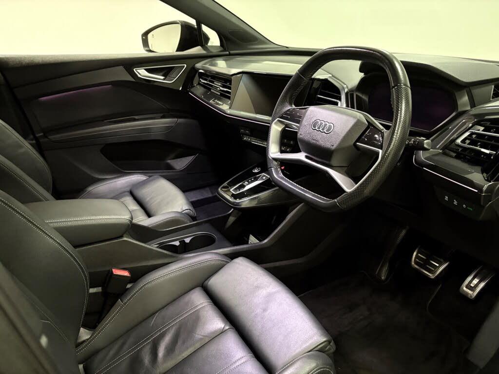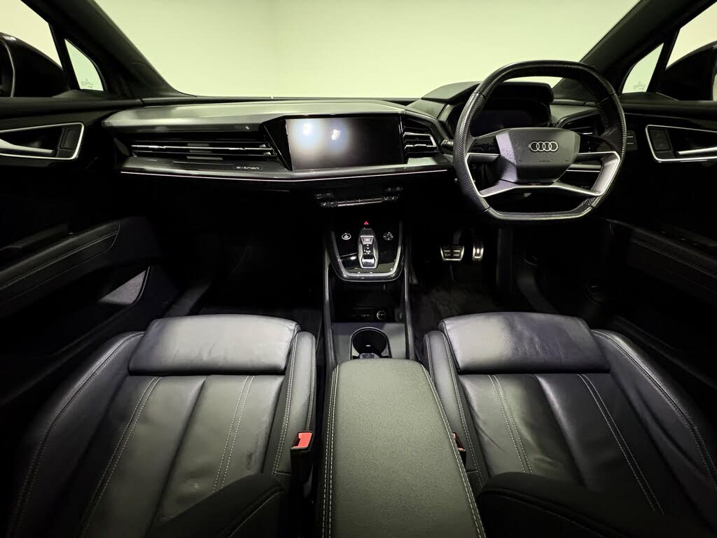 This q4 has been serviced at 19-39k miles through an audi main dealer and has had only one owner since new. finished in grey with black leather interior and has an mot until november 2026. this particular model features electric front seats with memory function, audi virtual cockpit, car play, 3-zone electronic climate control, and heated front seats for added comfort. the bluetooth interface ensures seamless connectivity.the audi q4 e-tron edition 1 stands out with its impressive electric performance and practicality. the large boot space offers ample room for all your needs, making it a versatile choice for everyday life and longer journeys. this combination of a single owner, comprehensive service record, and desirable features like the advanced climate control and rapid charging capabilities positions this q4 e-tron as a compelling option for those seeking a premium electric suv.-audi history/memory seats-open 7 days a week 01522 246777[!@@additional info@@!]110kw dc charging capability, 2 usb-c ports with charge and data functions, 20in alloy wheels - 5-v-spoke polygon - audi sport - matt titanium grey - gloss turned finish, 3-zone electronic climate control, 4-way electric lumbar support for front seats, 7.2 kw onboard charger, abs - anti-lock braking system, ac and dc charging access point on the rear right, active vehicle alerting system - avas, aluminium look interior elements, ambient lighting package plus, anti theft locking wheel bolts, anti-theft alarm, audi connect navigation and infotainment services plus (3 year subscription from new), audi connect safety and service - e-call, audi drive select, audi pre-sense front with pedestrian and cyclist recognition, audi smartphone interface, audi sound system, audi virtual cockpit - 10.25in display, auto dimming and frameless rear view mirror, black door mirror housings, black roof rails, black styling package, bluetooth interface, camera based traffic sign recognition, cloth headlining in black, comfort auxiliary air conditioning, compact e-tron charging system, contrast bumpers in manhattan grey paint finish, cruise control with speed limiter, dab digital radio, driver and front passenger airbag with front passenger airbag deactivation, electric windows - front, electrically adjustable front seats, electronically operated child locks, first aid kit and warning triangle and safety vests, folding door mirrors with auto-dimming function for both the drivers and passengers side electrically folding - adjustable and heated with built-in led side indicators and kerb-view function for passenger side, front centre armrest, front door sill trims with aluminium inlay - illuminated with s logo, front side airbags with head level airbag system and front interaction airbag, front and rear floor mats, headlight washers, heated front seats, household plug type g - gb, i-size child seat mounting on the front passenger side and i-size and top tether on the outer rear seat, industry plug cee 32 a-230 v long and straight, inlays - darkened matt brushed aluminium, keyless go, lane departure warning, leatherette door armrests, mmi navigation plus with high resolution 11.6in touchscreen colour display, matrix led headlights with digital light signatures - dynamic light sequencing and dynamic indicators, memory function for the driver seat and the exterior mirrors, mode 3 type 2-ac charging cable 22kw, non-smoking package, pedals in stainless steel, power operated tailgate, privacy glass - dark tinted rear window - rear door windows and rear side windows, progressive steering, projection light in the exterior mirrors, rear parking sensors, s line badges on front wings, seat belt monitoring, single frame grille with a structured closed surface with an octagonal shape, split folding rear seat bench - 40-20-40 with rear seat armrest and cup holders, sport suspension, steering wheel - twin-spoke leather flat top and bottom - multi-function sport steering wheel with shift paddles for recuperation, swerve assist and turn assist, tool kit, tyre pressure loss indicator, windscreen with acoustic glass