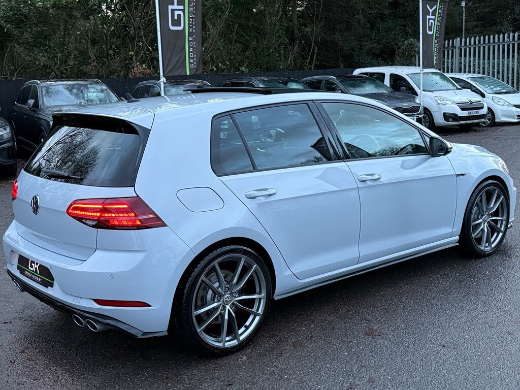 Uk home delivery available. walk around video and high res photos at georgekingsley.co.uk not all vehicles are kept on site or may be in preparation - please call prior to viewing to avoid disappointment. beautifully presented golf r in white silver metallic with black vienna leather interior. totally original and unmodified example with 19 inch pretoria alloys with 4 matching tyres, panoramic sunroof, reverse camera, full keyless entry, power folding mirrors, led headlights, adaptive cruise control, apple car play / android auto, full bluetooth, heated seats, virtual cockpit, privacy glass, floor mats, 2 keys. ghost immobilser. full service history by midland vw and colchester volkswagen, with both the haldex and dsg services carried out. just had a new mot, healthcheck and full valet all done prior to sale. call us to discuss delivery anywhere in the uk on this vehicle. autoglym lifeshine dealer - ask about having autoglym's ceramic coating applied to your vehicle. have a look at reviews on google and our website to read more about us and the service we offer our clients. follow our facebook/instagram pages for stock updates. all our videos are on our youtube channel. this vehicle is hpi checked. warrantywise warranty upgrades for 12 or 24 months available. uk nationwide delivery available. finance specialist - we have over 20 lenders available for all circumstances and may beat your banks quote. finance & drive away on the day. nice part exchanges considered. view our website - www.georgekingsley.co.uk - prestige & performance specialist - award winning dealer - best customer care 2017. all transactions subject to a £149 transaction fee.[!@@additional info@@!]12v socket - luggage compartment, abs - anti-lock braking system with hba - hydraulic brake assist, active info display, adaptive cruise control, airbags, alarm with interior protection, ambient lighting, ambient lighting pack, anti-tramp function, automatic coming-leaving home lighting function, automatic post-collision braking system, bag hooks in the luggage compartment x2, black rooflining, body coloured bumpers, body coloured door handles, brake calipers - black, brake pad wear indicator, car-net app connect, car-net security and service including ecall, carbon touch decorative inserts in dash and door panels, carpet mats - front and rear, child security locks in the rear doors, chrome plated air vent surrounds, chrome plated electric mirror adjustment switch surround, chrome plated electric window button surrounds, chrome trimmed front air intake surround, chrome-plated light switch surround, climate control, composition media system, convenience pack, cover for storage compartment in centre console, cup holders - front x2, discover navigation touch-screen navigation-radio system with car-net guide and inform, driver alert system, driver personalisation profile, drivers and passengers safety optimised head restraints, driving mode selection, dusk sensor - automatic driving lights, dust and pollen filter, esc - electronic stability control including edl - electronic differential lock and asr - traction control with deactivation via infotainment system, electric windows - front and rear, electronic engine immobiliser, electronic parking brake with auto hold function, extended sill strips - flared, front assist, front centre armrest with storage compartment and two rear air vents, front footwell illumination, front seat back storage pockets, front sport seats with height and lumbar adjustment, front sports seats with embroidered r logo, galvanised body, glovebox - cooled, grab handles - front x2 rear x2 with coat hooks, headlight washers, heated front seats, heated rear windscreen, heated windscreen washer jets, height-adjustable front three-point seat belts with tensioners, high level 3rd brake light incorporating led technology, isofix child seat preparation for 2 rear seats, illuminated door sill protectors, instrument cluster with r specific design, instrument lighting - white adjustable panel illumination, interior light delay, keyless entry, led headlights with dynamic curve light, led headlights with dynamic light assist, led tinted rear light clusters, lights on warning buzzer, load lashing points x4 in luggage compartment, load-through provision, low washer fluid warning light, luggage compartment cover - stowable, luggage compartment light, luggage compartment storage area on left and right, lumbar support for drivers and front passenger seat, matt chrome effect door mirrors, mirror pack, multifunction computer, parking sensors - front and rear, piano black decorative inserts in centre console, pre-crash preventive occupant protection, predictive pedestrian protection, premium usb cable, progressive steering, r sports suspension - lowered, r styling pack, rain sensor and automatic dimming rear-view mirror, reading lights front x2 and rear x2 - led, rear centre armrest - folding with cup holders x2, rear diffuser in black with twin oval chrome exhaust tailpipes left and right, rear lights incorporating led technology, rear number plate lights incorporating led technology, rear screen wash-wipe with intermittent wipe, rear tinted glass - b pillar backwards - approx 65 percent tinted, rear window aerial, reflectors in doors, remote central locking with 2 remote folding keys, remote electrically foldable door mirrors - door mirror puddle lights and reverse activated kerb-view adjustment on passengers door mirrors, speedo and rev counter - electronic odometer - trip - service interval display - exterior temperature gauge and fuel gauge, split folding rear backrests 60-40, stainless steel pedals - clutch - brake and accelerator, steel space saver spare wheel, steering column - height and reach adjustable, steering wheel - multifunction - leather trimmed with paddle shift, storage compartment in centre console, storage compartment in front doors, storage compartment in rear doors, storage compartment in roof console with c